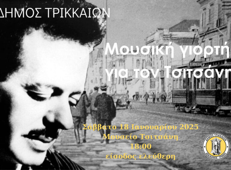 Σε μια ιδιαίτερη ημερομηνία, στις 18 Ιανουαρίου, ημέρα που γεννήθηκε και έφυγε από τη ζωή ο σπουδαίος Βασίλης Τσιτσάνης, ο Δήμος Τρικκαίων διοργανώνει μια ξεχωριστή μουσική εκδήλωση. Στις 18:00 της 18ης Ιανουαρίου 2025, στην αίθουσα εκδηλώσεων του Μουσείου Τσιτσάνη, το…