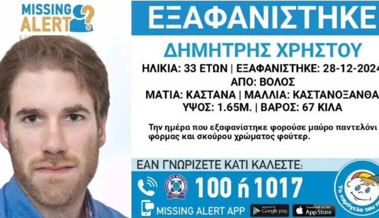 Βόλος: Εξαφανίστηκε ο 33χρονος Δημήτρης
