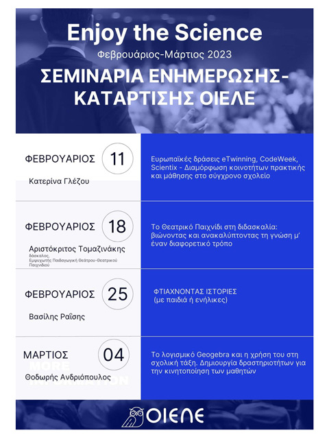 “Enjoy the Science”: Σεμινάρια επιμόρφωσης και κατάρτισης ΟΙΕΛΕ