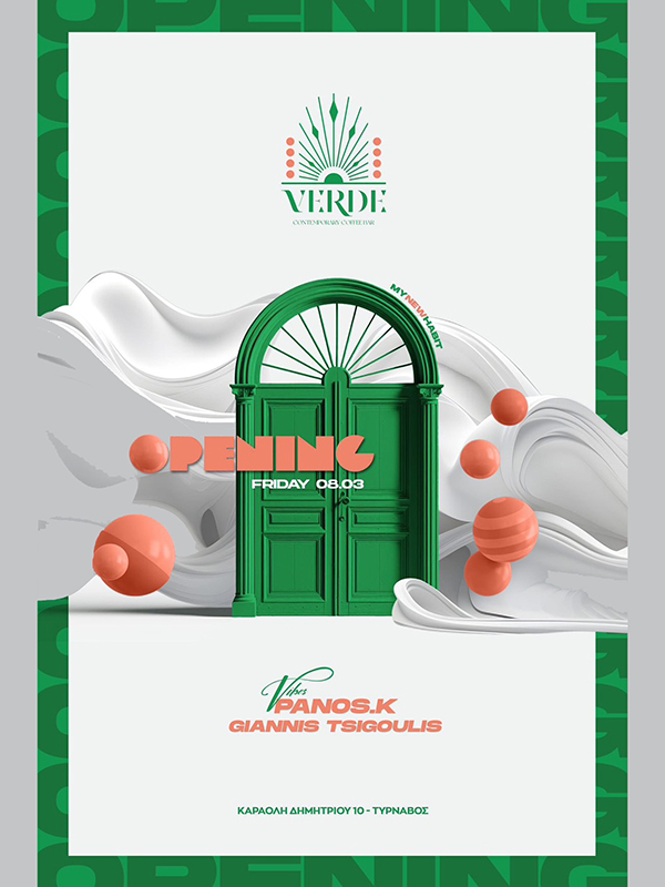 Το αγαπημένο spot της διασκέδασης στον Τύρναβο είναι ξανά εδώ! Με ανανεωμένη ομάδα, νέα happenings και φυσικά με πολύ ενέργεια και διάθεση, το νέο cafe bar VERDE. Ανακαινισμένο με νέα αισθητική χωρίς όμως να αλλάζει το ύφος του, νέα πρόσωπα…