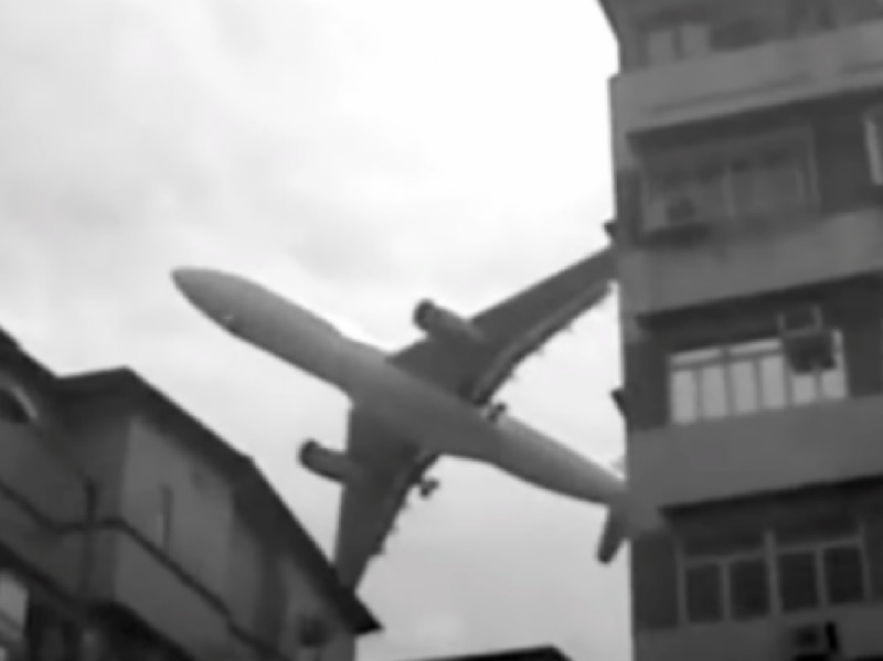 Το αεροπλάνο συνέχιζε να πετά στα 55 μέτρα ξύνοντας τις πολυκατοικίες και παρασέρνοντας ακόμα και κεραίες τηλεοράσεων.