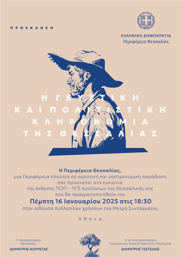Στο πλαίσιο ανάδειξης της ταυτότητας των ποιοτικών προϊόντων της Θεσσαλίας, η Περιφέρεια Θεσσαλίας προγραμματίζει μια μεγάλη εκδήλωση προβολής αυτών, για τρεις μέρες, από 16 Ιανουαρίου μέχρι 18 του μήνα στην Αθήνα. Τα εγκαίνια θα πραγματοποιηθούν αύριο Πέμπτη 16 Ιανουαρίου στις 6.30 μ.μ. στο Μετρό του Συντάγματος και για 3 μέρες όσοι επισκεφτούν την Έκθεση θα έχουν την δυνατότητα να γευτούν νόστιμα και ποιοτικά προιόντα που θα προσφέρουν 14 Αγροτικοί Συνεταιρισμοί της Θεσσαλίας. Η Περιφέρεια χρηματοδοτεί την παρουσία, με περίπτερα, των 14 αγροτικών οργανώσεων και Ενώσεων, οι οποίοι έχουν καταθέσει φακέλους για πιστοποίηση προιόντων ΠΟΠ/ΠΓΕ, ενώ πρόθεση της είναι να συνεχίσει σε όλα τα επίπεδα την προσπάθεια ανάδειξης των ποιοτικών προιόντων με ταυτότητα, ενισχύοντας το αγροτικό εισόδημα των παραγωγών. Στη  έκθεση θα υπάρχει γευσιγνωσία, καθώς σε ειδικό παρασκευαστήριο θα μαγειρεύονται τα προιόντα και θα προσφέρονται στους χρήστες του Μετρό και σε διερχόμενους από το Σύνταγμα πολίτες.