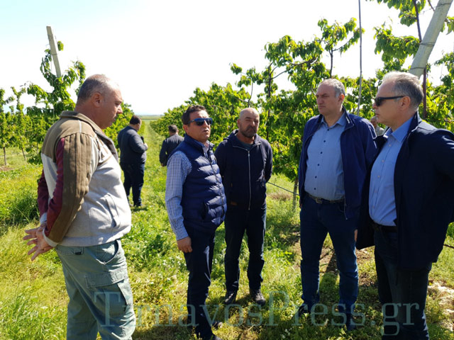 Τους συνόδευαν ο Δήμαρχος Τυρνάβου κ Ιωάννης Κόκουρας, ο Αντιδήμαρχος Πρωτογενούς Τομέα κ Γεώργιος Σακούτσιος, ο Πρόεδρος του τοπικού συμβουλίου κ Δημήτρης Ρίζος, ο πρόεδρος του Συνεταιρισμού Φρουτοπηγή κ Κώστας Μαλάκος, ο Πρόεδρος του Αγροτικού Συνεταιρισμού Πλατανουλίων κ Αθανάσιος Κατσής και πολλοί αγρότες παραγωγοί που έδειξαν στο κλιμάκιο την έκταση των ζημιών.