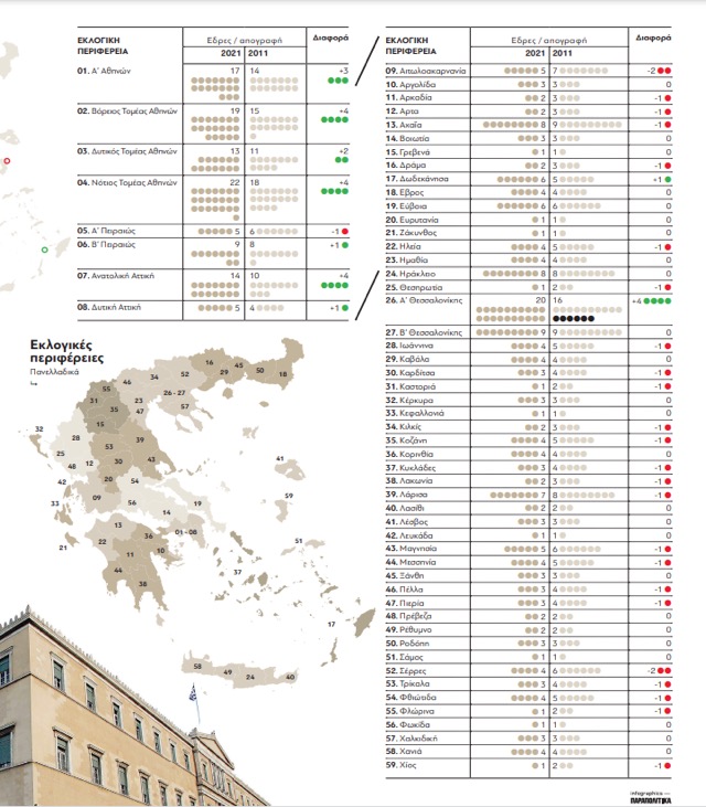 Δημοσίευμα βόμβα της εφημερίδος Παραπολιτικά αναλύει τις μεταβολές λόγω απογραφής 2021 στην κατανομή των βουλευτικών εδρών.