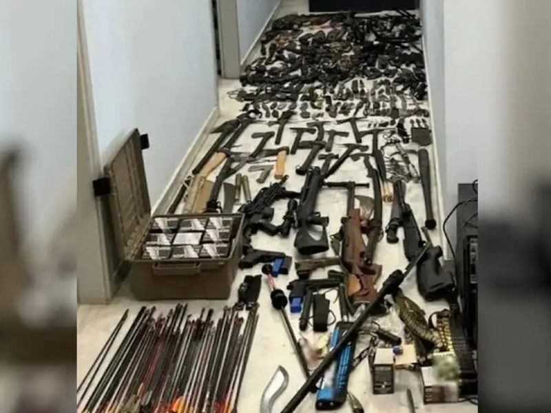 Κατά τον έλεγχο βρέθηκαν 2 δυναμίτες, 7 αεροβόλα όπλα, 5 σπαθιά, 107 τσεκούρια, 177 μαχαίρια (εκ των οποίων 116 στρατιωτικού τύπου και 61 αναδιπλούμενα), 3 βαλλίστρες, 3 τόξα, 51 βέλη, 24 ματσέτες, 1 κάννη πυροβόλου, 6 διόπτρες σκόπευσης, 4 ρόπαλα, 1 φυσοκάλαμο με 9 βελόνες, 1 ακόντιο 2 μέτρων με προσαρμοσμένο μαύρο μαχαίρι, 4 γεμιστήρες, 741 φυσίγγια διαφόρων διαμετρημάτων, 9 πολεμικά αστεράκια (shuriken) και 3 πτυσσόμενα σιδερένια.