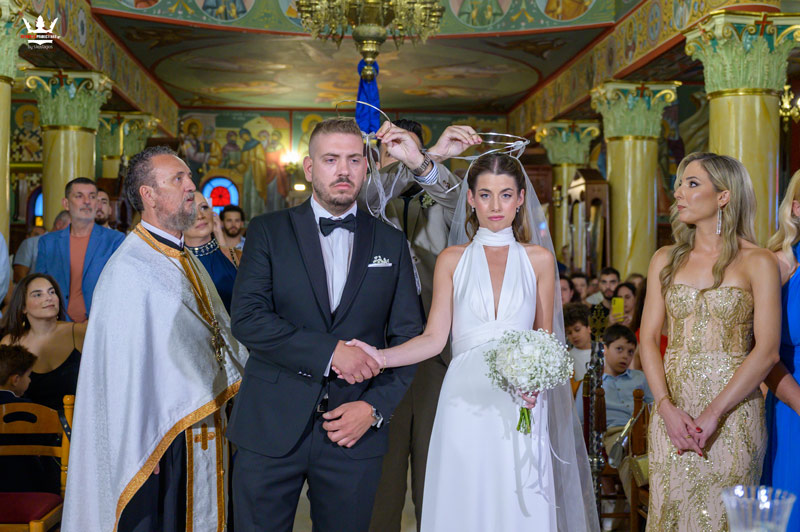 Η τελετή πραγματοποιήθηκε σε μια ζεστή και εορταστική ατμόσφαιρα, με το ζευγάρι να ανταλλάσσει όρκους αγάπης και αφοσίωσης, αποσπώντας τις θερμότερες ευχές όλων για υγεία, ευτυχία και προκοπή στη νέα τους κοινή πορεία.