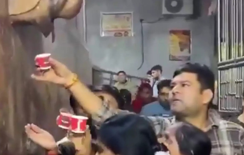 Συγκεκριμένα πιστοί έκαναν μεγάλες ουρές προκειμένου να πιούν νερό που έσταζε από ένα γλυπτό ελέφαντα, καθώς πίστευαν ότι ήταν αγιασμένο, καθώς έσταζε από τα πόδια του Κρίσνα. Κάποιοι είχαν φέρει μαζί τους ποτηράκια για να βάλουν μέσα το «αγιασμένο» νερό, ενώ άλλοι το έπαιρναν με τα χέρια τους και έβαζαν στο πρόσωπό τους.