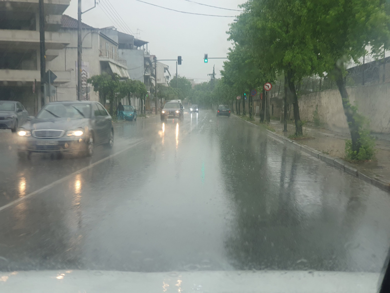 Στην Λάρισα οι δρόμοι μετατράπηκαν σε λίμνες και χρειάζεται μεγάλη προσοχή