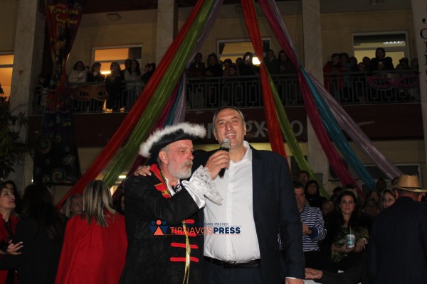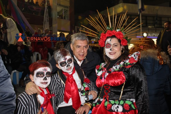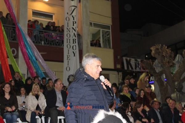 Στην εξέδρα των επισήμων ο Δήμαρχος Τυρνάβου Γιάννης Κόκουρας με τους Αντιδημάρχους του Δήμου αλλά και με τους καλεσμένους του απόλαυσαν το καρναβάλι.