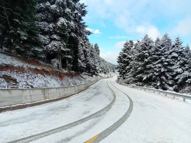 Ο δρόμος προς το καταφύγιο από τη Σπηλιά καθαρός και το χιόνι στα 5 εκατοστά.