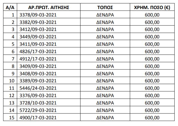 Ο Δήμαρχος Τυρνάβου Γιάννης Κόκουρας εγκρίνει σύμφωνα με την απόφαση με αριθμό 121, τις κάτωθι αιτήσεις κατοίκων του Δήμου Τυρνάβου και συγκεκριμένα στα Δέντρα 15 αιτήσεις με το ποσό των 600 ευρώ σε δικαιούχους για την χορήγηση επιδόματος πρώτων βιοτικών αναγκών, των οποίων η κύρια κατοικία έχει πληγεί από τον σεισμό στις 3 Μάρτιου 2021 και έχει περιέλθει σε κατάσταση έκτακτης ανάγκης του άρθρου 1 της ΚΥΑ 33862/06-05-2019 ( ΦΕΚ 1699/Β/16-5-2019).