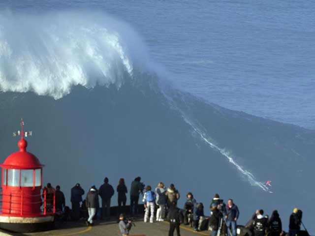 Στο Ναζαρέ έχουν καταγραφεί τα μεγαλύτερα κύματα που έχουμε δει ποτέ στον πλανήτη, εκτός εκείνων που ήταν αποτέλεσμα σεισμού. Είναι τόσο μεγάλα που τα βλέπουν και οι δορυφόροι.