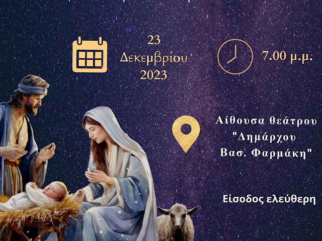 Η Αντιδημαρχία Πολιτισμού, Αθλητισμού, Παιδείας και Δια Βίου Μάθησης του Δήμου Ελασσόνας σας προσκαλεί στη χριστουγεννιάτικη συναυλία «Χριστούγεννα στην Ευρώπη» με τα Χορωδιακά Σύνολα του Δήμου Ελασσόνας, το Σάββατο 23 Δεκεμβρίου, ώρα 7:00 μ.μ., στην αίθουσα θεάτρου «Δημάρχου Βασ. Φαρμάκη», στην Ελασσόνα.