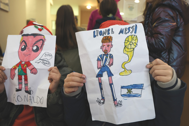 Η κα Καρυστιανού, αφού καλωσόρισε τους μικρούς μαθητές, τους ευχαρίστησε θερμά για την πολύτιμη προσφορά τους – τρόφιμα που θα διανεμηθούν στους δικαιούχους της Δομής – και συμμετείχε ενεργά στις δράσεις των παιδιών, οι οποίες περιλάμβαναν κυρίως τη δημιουργία χριστουγεννιάτικων καρτών για τα παιδιά των δικαιούχων της δομής.