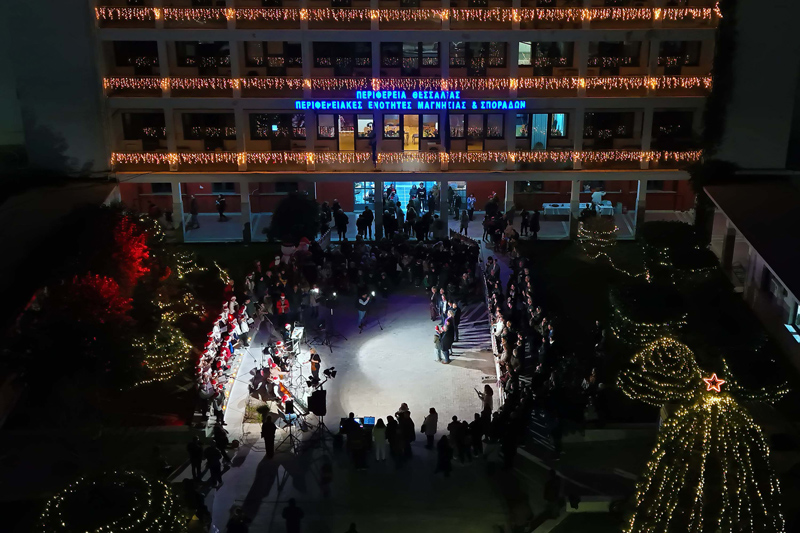 Μία όμορφη χριστουγεννιάτικη γιορτή διοργάνωσε η Περιφέρεια Θεσσαλίας στον προαύλιο χώρο του Διοικητηρίου της ΠΕ Μαγνησίας και Σποράδων, παρουσία του Περιφερειάρχη Δημήτρη Κουρέτα, στην οποία την παράσταση έκλεψαν τα μικρά παιδιά.