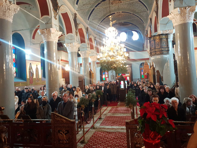 Στον κατάμεστο Ναό από τον π. Δημήτριο και συν αυτό τελέστηκε με λαμπρότητα η Πανηγυρική Θεία Λειτουργία της Γεννήσεως του Θεανθρώπου.