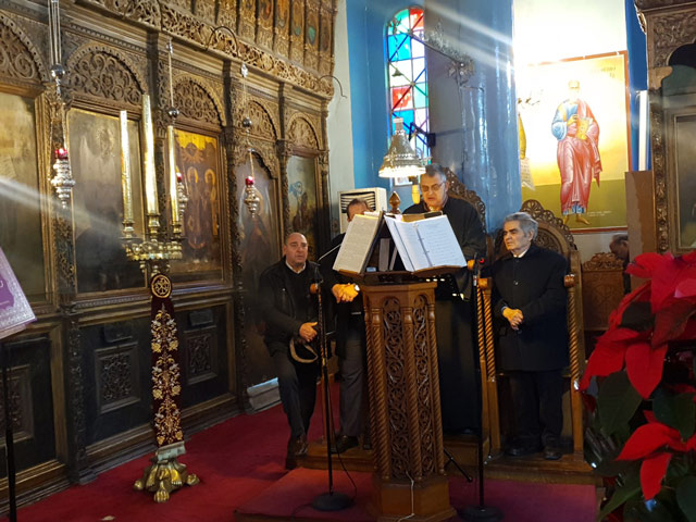 Χορωδία από μικρά παιδιά έψαλαν με μια φωνή το Πάτερ Υμών ενώ οι βυζαντινοί ψαλμοί από τον Πρωτοψάλτη καθηγητή Βυζαντινής Μουσικής Χριστόφορο Καρυώτη πλημμύρισαν την μεγαλοπρεπή εκκλησία του Τυρνάβου όπως αρμόζει στην μεγαλύτερη γιορτή της Χριστιανοσύνης.