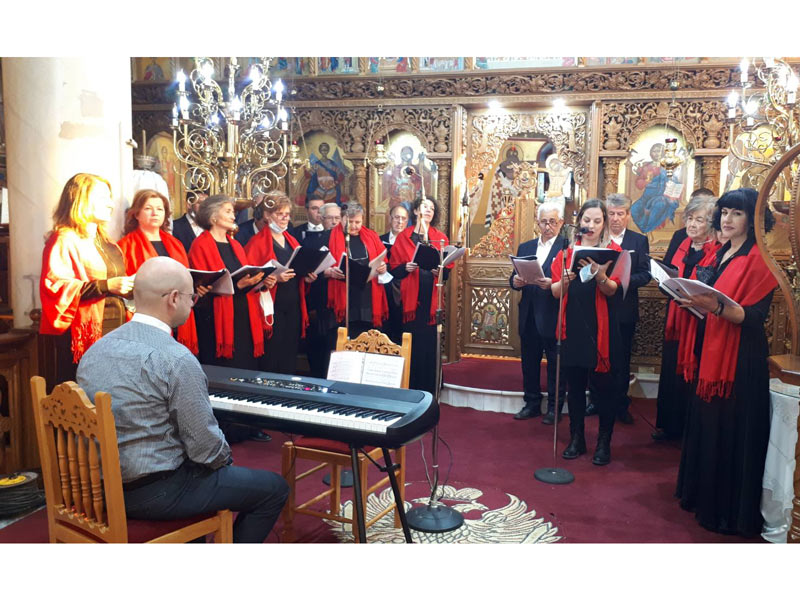 Λίγες μέρες πριν από τα Χριστούγεννα η χορωδία έντυσε με μελωδίες τον ναό του Αγίου Δημητρίου, παρουσία αρκετών πιστών. Ο πάτερ Ιωάννης υποδέχτηκε την χορωδία και τους ευχαρίστησε που επέλεξαν τον ναό του Αγίου Δημητρίου για την σημερινή εκδήλωση.
