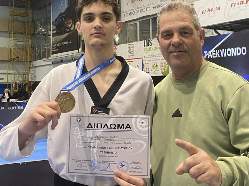 Το Χρυσό μετάλλιο στην κατηγορία των 73 κιλών κατέκτησε ο αθλητής του ΑΘΛΗΤΙΚΟΥ ΟΜΙΛΟΥ ΤΑΕΚΒΟΝΤΟ ΤΥΡΝΑΒΟΥ Κωνσταντάς Θεόδωρος μετά από 5 νικηφόρους αγώνες, ο οποίος αγωνίστηκε με το ΕΠΑΛ ΤΥΡΝΑΒΟΥ στο Πανελλήνιο Σχολικό πρωτάθλημα Λυκείων που διεξάγεται στις Σέρρες 7-9 Απριλίου.