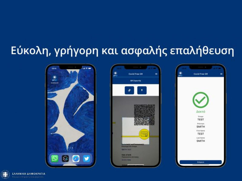 Την εφαρμογή, «Covid Free GR», με την οποία θα ελέγχεται η εγκυρότητα του πιστοποιητικού εμβολιασμού ή νόσησης για την πρόσβαση των πολιτών σε κλειστούς χώρους εστίασης και ψυχαγωγίας, που θα λειτουργούν αποκλειστικά για εμβολιασμένους μέχρι τα τέλη Αυγούστου, αλλά και των πιστοποιητικών αρνητικού rapid ή pcr τεστ για τους υπαίθριους μικτούς χώρους, παρουσίασε ο υπουργός Ψηφιακής Διακυβέρνησης, Κυριάκος Πιερρακάκης, στην ενημέρωση του υπουργείου Υγείας
