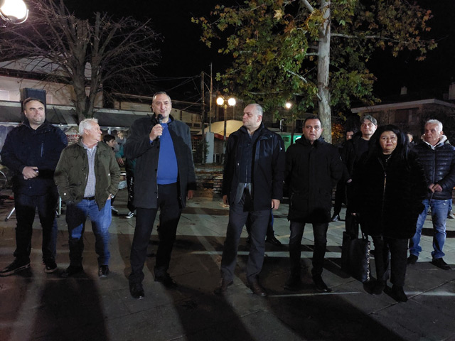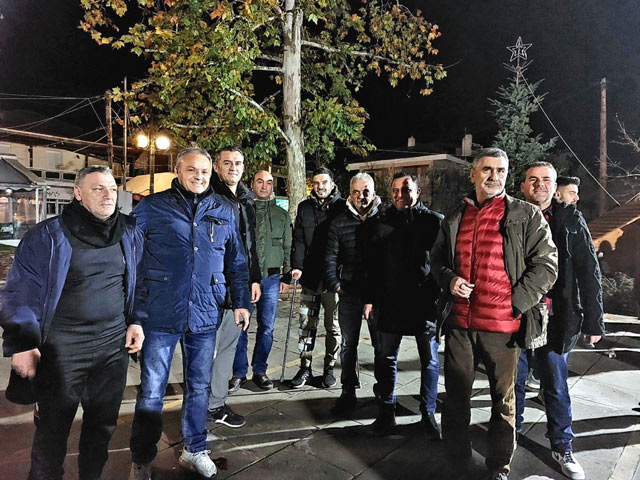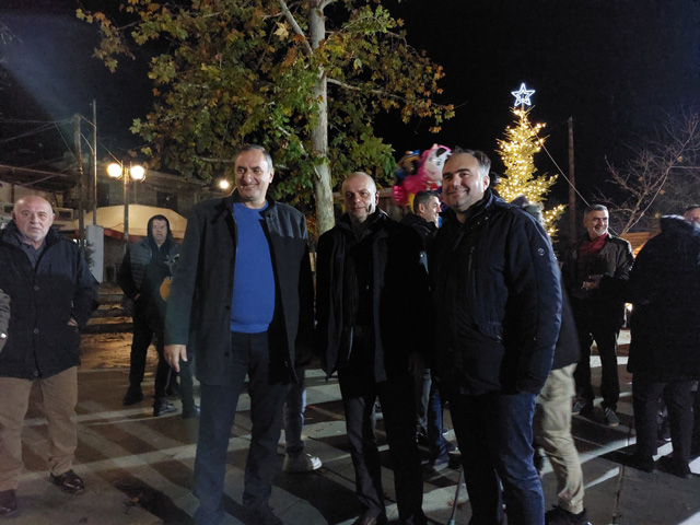 Άναψε το χριστουγεννιάτικο δέντρο στην πλατεία του Δαμασίου Τυρνάβου, με αρκετό κόσμο να συγκεντρώνεται από νωρίς παρά το τσουχτερό κρύο.