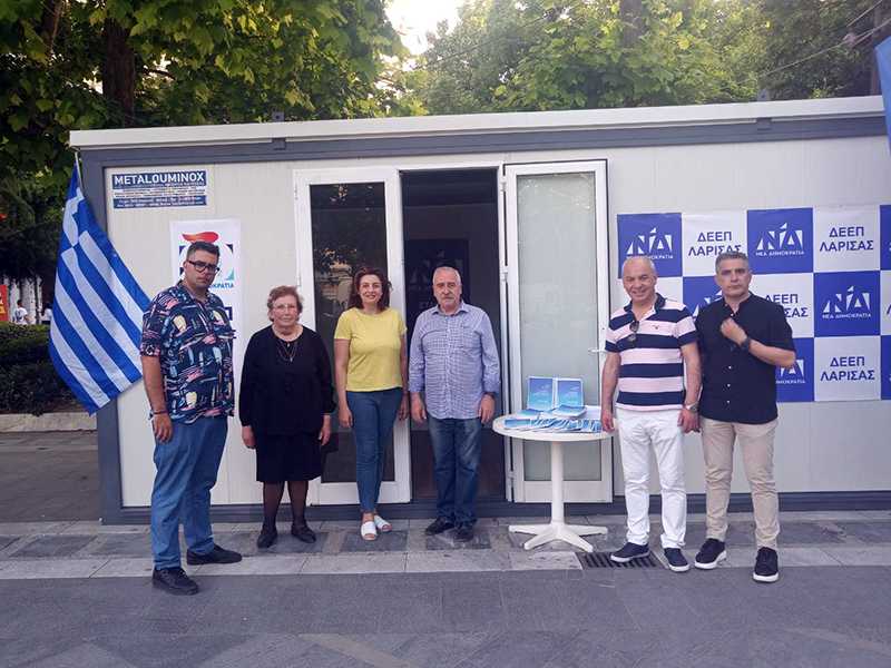 Εκλογικό περίπτερο έχει εγκαταστήσει η ΔΕΕΠ Νέα Δημοκρατία Λάρισας στην Κεντρική πλατεία της πόλης.