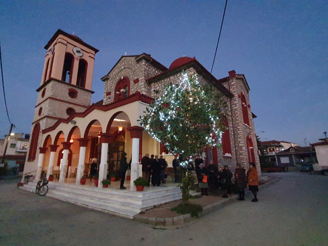 Ένα δέντρο άναψε στο Άγιο Ιωάννη Τυρνάβου από τον π. Γεώργιο