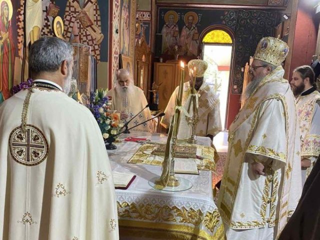 Στον Πανηγυρίζοντα Ιερό Ναό της Αναλήψεως του Χριστού Λαρίσης χοροστάτησε στον Όρθρο και τέλεσε την Θεία Λειτουργία ο Σεβασμιώτατος Μητροπολίτης μας κ. Ιερώνυμος, συνιερουργούντος του Θεοφιλεστάτου Επισκόπου Γκούλου και Βορείου Ουγκάντας κ. Νεκταρίου.