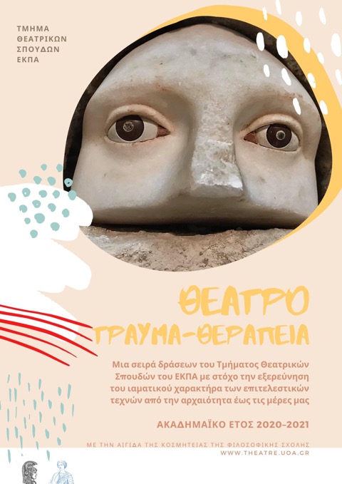 Με αφετηρία την κοινή εμπειρία του τραύματος και τη συλλογική αίσθηση ότι το θέατρο ενώνει σώματα-συναισθήματα, ενώ ταυτόχρονα συνδέει τα διεστώτα, αποχαιρετούμε το 2020 με την έναρξη ενός κύκλου διαδικτυακών συνομιλιών με γενικό θέμα «Θέατρο-Τραύμα-Θεραπεία», μια πρωτοβουλία του Τμήματος Θεατρικών Σπουδών του ΕΚΠΑ. Πρόκειται για μια εξερεύνηση του ιαματικού χαρακτήρα των επιτελεστικών τεχνών από την αρχαιότητα έως τις μέρες μας.
