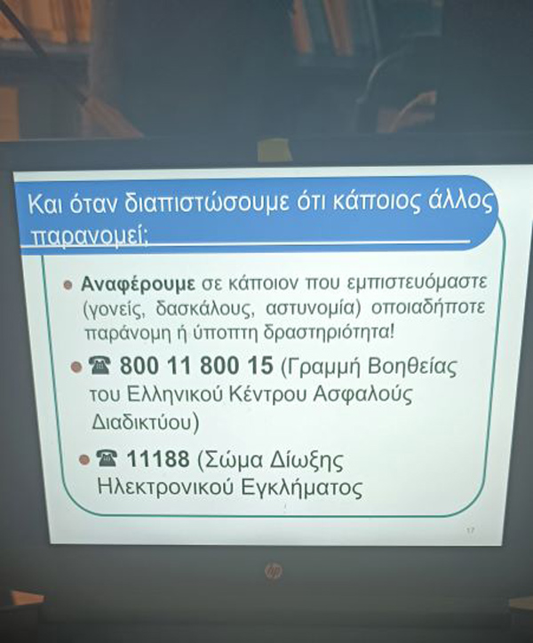 Στη συνεχεία, παρουσίασε τρόπους προστασίας των Προσωπικών Δεδομένων των μαθητών/-τριών, με τη βοήθεια ενημερωτικών βίντεο, χρήσιμων συμβουλών – οδηγιών, αλλά και εξειδικευμένου εκπαιδευτικού υλικού, το οποίο τέθηκε στη διάθεση των μαθητών/-τριών και των εκπαιδευτικών του σχολείου.