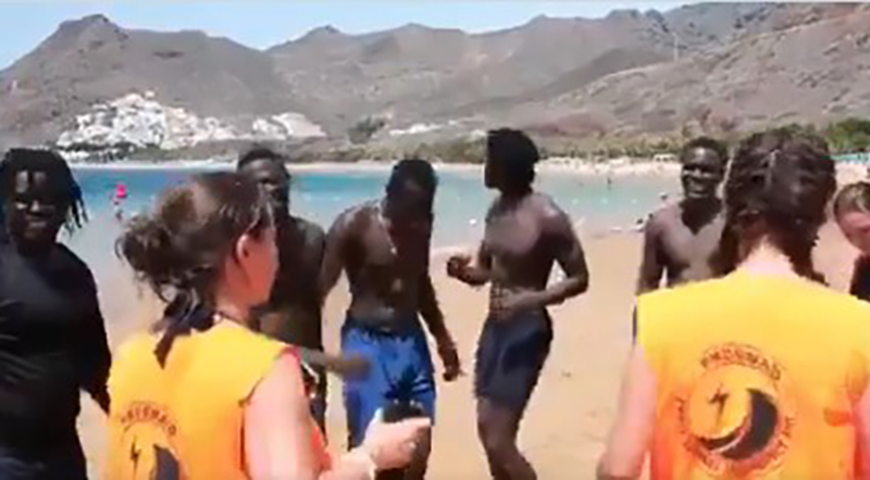Τα κορίτσια με τα πορτοκαλί είναι ναυαγοσώστριες και κάνουν μαθήματα κολύμβησης στους Αφρικανούς.