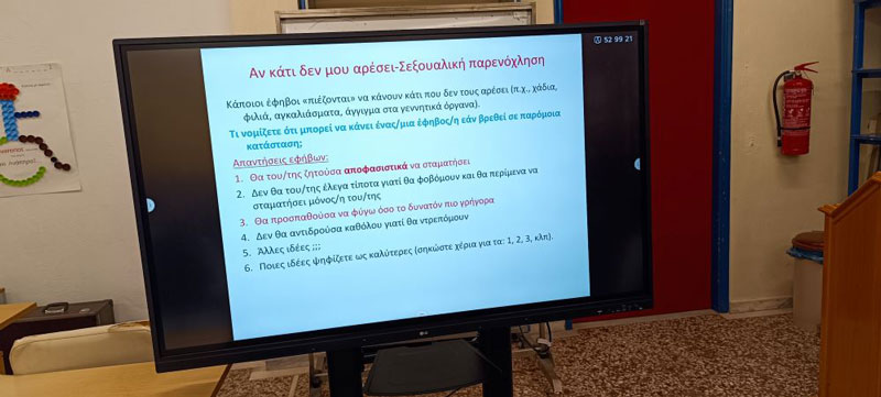 Η ενημέρωση πραγματοποιήθηκε στα πλαίσια των δράσεων «Ενεργού Πολίτη», που πραγματοποιεί το σχολείο. Σκοπός της παρέμβασης ήταν η ενημέρωση και ευαισθητοποίηση των μαθητών σχετικά με ζητήματα που αφορούν τις σχέσεις, τη σεξουαλική υγεία, την πρόληψη και τη σωστή λήψη αποφάσεων για την υγεία τους.