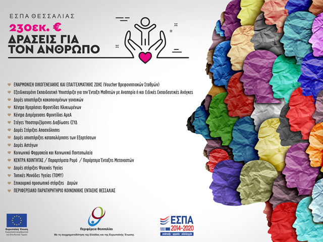 «Με χρηματοδότηση από το ΕΣΠΑ Θεσσαλίας 2014-2020, στην Περιφέρεια εξελίσσεται ένα πρόγραμμα ύψους 91,2 εκατομμυρίων ευρώ με βαθύ κοινωνικό αποτύπωμα, με επίκεντρο τον άνθρωπο και τις ανάγκες του. Επιπλέον, με 47 εκατ. ευρώ στηρίζουμε εργαζομένους που βρίσκονται σε αναστολή εργασίας λόγω της πανδημίας του covid-19.