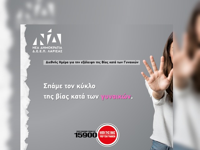 Με αφορμή τη Διεθνή Ημέρα για την εξάλειψη της Βίας κατά των Γυναικών, η ΔΕΕΠ  ΝΕΑ ΔΗΜΟΚΡΑΤΙΑ  Λάρισας επικοινωνεί μεσω τεσσάρων banners το μήνυμα: