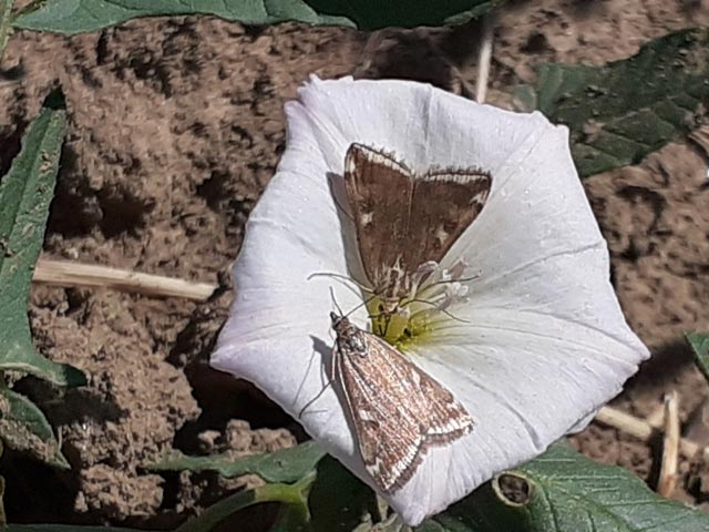 Η Διεύθυνση Αγροτικής Οικονομίας Περιφέρειας Θεσσαλίας, σε συνεργασία με το ΜΦΙ, ενημερώνει τους παραγωγούς για την παρουσία ενός νεοεμφανιζόμενου επιζήμιου εντόμου στη χώρα μας, που προκαλεί σημαντικές ζημιές στις καλλιέργειες. Πρόκειται για το λεπιδόπτερο (πεταλούδα) Loxostege sticicalis (εικ. 1), που από τα αυγά που γεννά το θηλυκό εκκολάπτονται προνύμφες (σκουλήκια) (εικ. 2, 3 και 4), που κινούνται ταχύτατα κατατρώγοντας κυρίως το φύλλωμα των φυτών (εικ. 4) με γρήγορους ρυθμούς και στη συνέχεια μετακινούνται σε γειτονικές καλλιέργειες.
