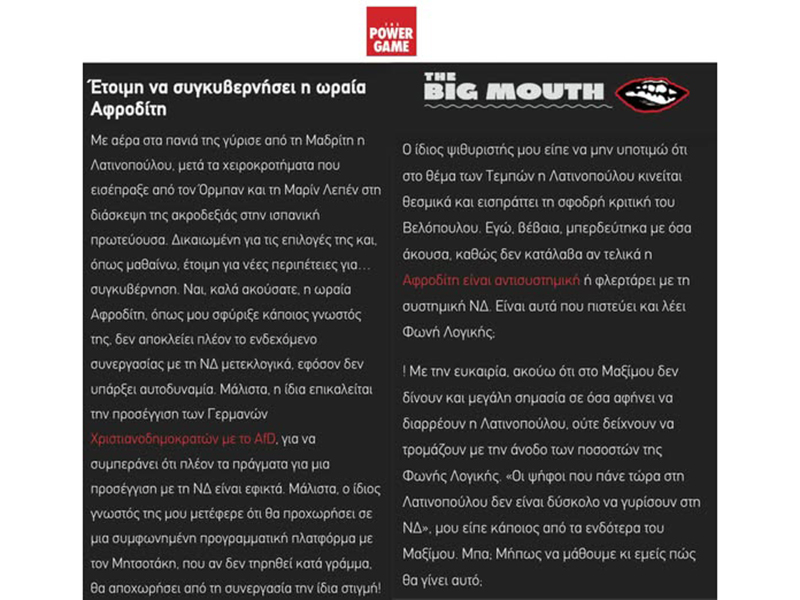 Στο υστερόγραφο της ανάρτησής της, η Λατινοπούλου διαψεύδει κατηγορηματικά το ενδεχόμενο συνεργασίας της Φωνής Λογικής με τη Νέα Δημοκρατία. Χρησιμοποιώντας τη φράση “γυρίστε πλευρό να το δείτε και σε ασπρόμαυρο το όνειρο”, υποδηλώνει ότι ένα τέτοιο σενάριο είναι απόλυτα φανταστικό και δεν έχει καμία βάση στην πραγματικότητα.