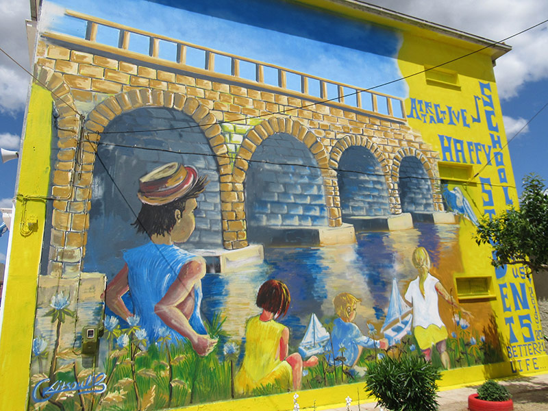 Με στόχο τη διάχυση του προγράμματος Erasmus+ΚΑ2 2018-2021με τίτλο “Attractive Schools- Happy Students- Better life”(Ελκυστικά σχολεία – Ευτυχισμένοι μαθητές – Καλύτερη ζωή) ανατέθηκε από τη Δ/νση του σχολείου στον εικαστικό Γιώργο Κιτσούλη να φιλοτεχνήσει σε εξωτερικό τοίχο του σχολείου τοιχογραφία που αφορά τη ζωή της πόλης μας μέσα από το παιδί.