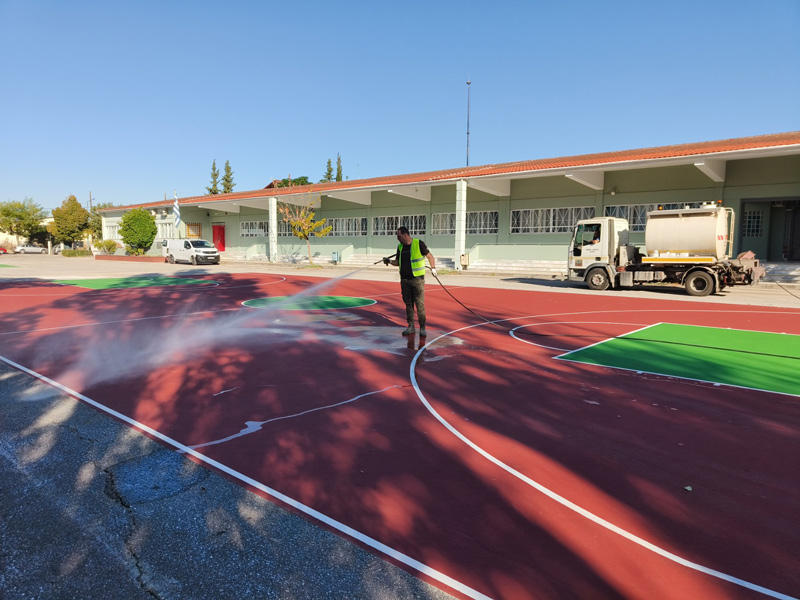Επί ποδός βρίσκονται τα συνεργεία καθαριότητας του Δήμου Λαρισαίων για τον καθαρισμό των αύλειων χώρων σχολικών συγκροτημάτων, ενόψει της έναρξης της νέας σχολικής χρονιάς.