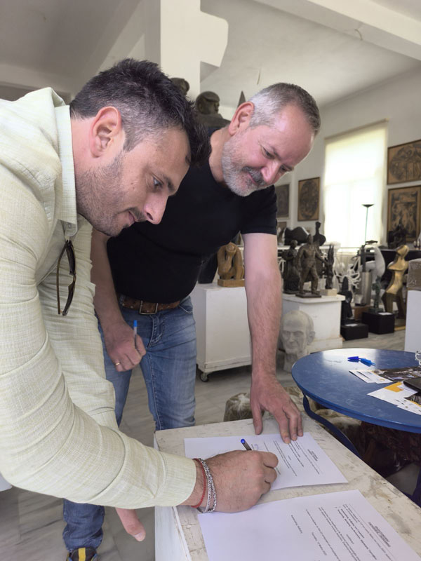 Μόλις ενημερωθήκαμε για την ύπαρξή τους και τον τόπο φύλαξής τους, κινητοποιηθήκαμε άμεσα και μεταβήκαμε στο εργαστήριο, όπου και τις παραλάβαμε από τον γιο του καλλιτέχνη, επισης γλύπτη και καθηγητή του Μετσοβειου Πανεπιστημίου Ανδρέα Καλακαλά. Τον ευχαριστούμε θερμά για τη συνεργασία και τη συμβολή του στην ολοκλήρωση αυτής της σημαντικής ενέργειας.