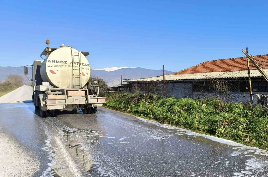 Ξεκίνησε από την Περιφέρεια Θεσσαλίας με τη συνεργασία του Δήμου Τυρνάβου η πραγματοποίηση απολυμαντικών ψεκασμών που καλύπτουν τις κύριες οδούς που διασχίζουν τις ζώνες προστασίας γύρω από τις πληγείσες περιοχές, στο πλαίσιο της συνδυαστικής εφαρμογής στοχευμένων μέτρων για τον περιορισμό της διασποράς της ευλογιάς των αιγοπροβάτων.