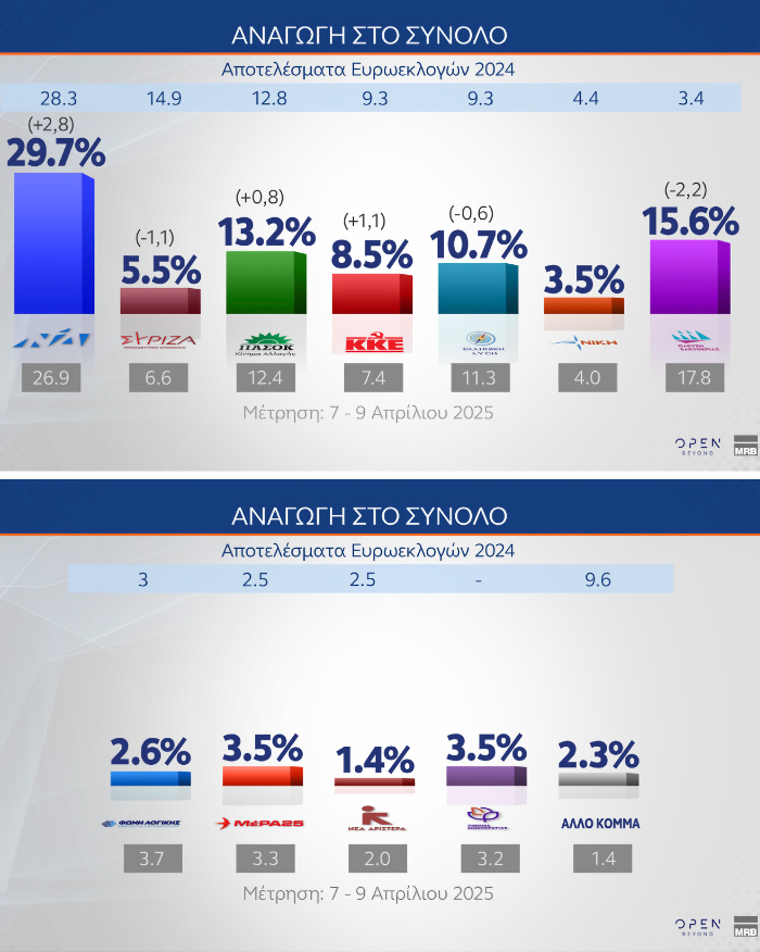 25-34 ετών: Πλεύση 19,3%, ΝΔ 11,8%, ΠΑΣΟΚ 10,6%, Ελληνική Λύση 9,2%
