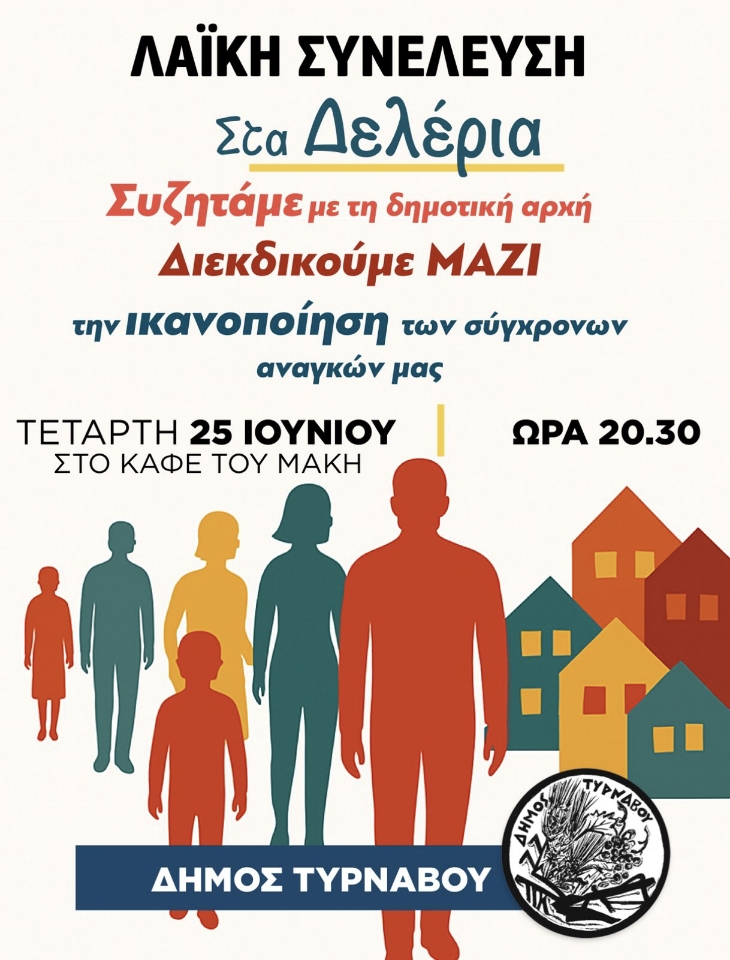 Ο Δήμος Τυρνάβου συνεχίζει τις λαϊκές συνελεύσεις στα χωριά του Δήμου, με στόχο την άμεση επαφή με τους κατοίκους, την καταγραφή των αναγκών και τον κοινό αγώνα για την ικανοποίησή τους.
