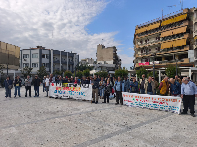 Η Δημοτική Αρχή θα συμμετέχει στην απεργιακή συγκέντρωση, αύριο Τρίτη 14 Οκτωβρίου, στις 11.00 το πρωί, στην κεντρική πλατεία του Τυρνάβου, απαιτώντας μαζί με τους φορείς, να αποσυρθεί το αντεργατικό νομοσχέδιο, 7ωρο – 5ήμερο – 35ωρο, ενάντια στη δουλειά από νύχτα σε νύχτα με μισθούς πείνας, ΣΣΕ με ουσιαστικές αυξήσεις, ασφάλεια και μέτρα προστασίας στους χώρους δουλειάς και την κατάργηση όλων των νόμων που καταργούν το 8ωρο και επιβάλουν την διαρκή ευελιξία.