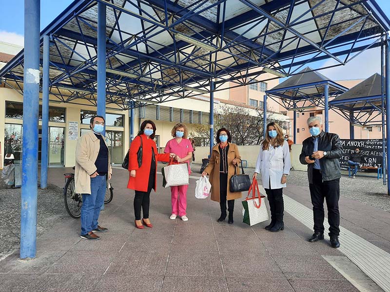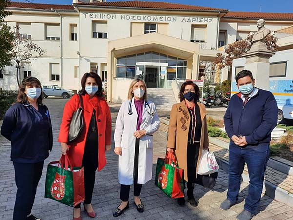 Αρχικά, η αντιπροσωπεία μελών της Δ.Ε.Ε.Π. Λάρισας και της ΔΗΜ.Τ.Ο. Λάρισας, επισκέφθηκε το Γενικό Νοσοκομείο Λάρισας και προσέφερε δώρα στα παιδιά της Παιδιατρικής Κλινικής. Συναντήθηκε με τον Διοικητή του Γενικού Νοσοκομείου Λάρισας κ.Γρηγόριο Βλαχάκη, τη Διευθύνουσα του Γ.Ν.Λάρισας κα Βασιλική Ζήση και τη Διευθύντρια της Παιδιατρικής Κλινικής του Γ.Ν.Λάρισας κα Σοφία Αλευρά.