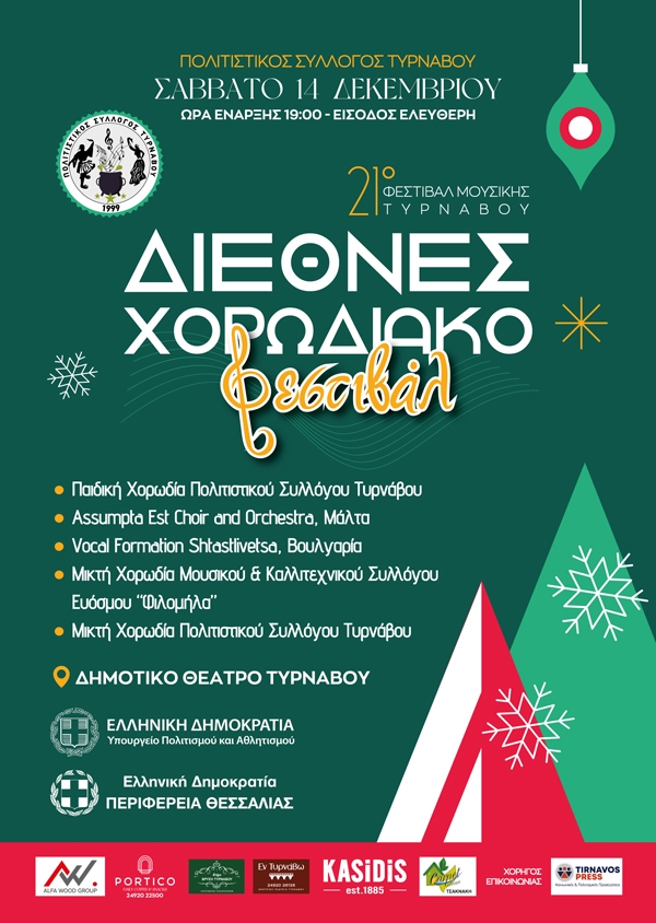 Συμβούλων των Δημοτικών Κοινοτήτων του Δήμου Τυρνάβου, που θα πραγματοποιηθεί την Κυριακή 17 Δεκεμβρίου 2023 και ώρα 20:00′ στο Δημοτικό Θέατρο Τυρνάβου, παρουσία του Σεβασμιότατου Μητροπολίτη Λαρίσης & Τυρνάβου κ.κ. Ιερωνύμου.