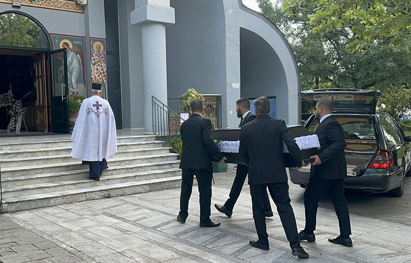 «Σε δύο χρόνια δύο κηδείες για τα παιδιά σου…», ανέφερε συντετριμμένος ο πατέρας της 52χρονης, πατήρ Λάμπρος Ρίνης. «Σήμερα αποχαιρετώ την κόρη μου και μετά εάν μπορέσω θα πάω να δω τον εγγονό μου, να του πω “γιατί το έκανε αυτό”;», σχολίασε επιπλέον.