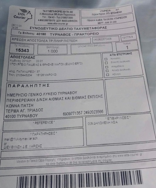 Σε συνέχεια της 151937/Δ2 /06.11.2020 απόφασης του Υπουργείου Παιδείας και Θρησκευμάτων ξεκίνησε η κατανομή σε διάφορα Λύκεια της χώρας φορητές συσκευές tablet ως δωρεά από το Μουσείο Κυκλαδικής Τέχνης και τον Θεόδωρο Αγγελόπουλο και την Γιάννα Αγγελοπούλου Δασκαλάκη. Ακολουθεί λίστα με τις ακριβείς ποσότητες tablet που προορίζονται για τασχολεία του Δήμου Τύρναβου και του Δήμου Λάρισας :