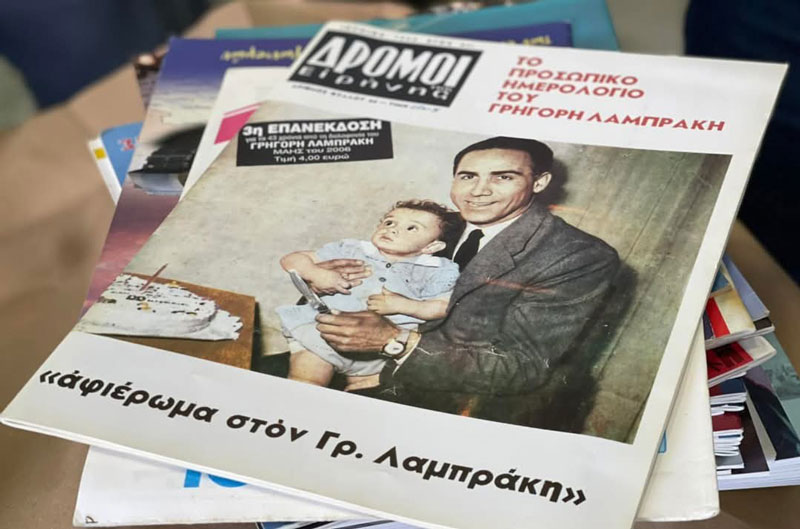 Η προσφορά περιλαμβάνει αρχειακά τεύχη του περιοδικού «Δρόμοι της Ειρήνης», καθώς και άλλα έντυπα με ιστορικά και πολιτικά αφιερώματα, μεταξύ των οποίων ξεχωρίζει το τεύχος για τον Γρηγόρη Λαμπράκη, έναν από τους σημαντικότερους αγωνιστές του φιλειρηνικού κινήματος στη χώρα μας.