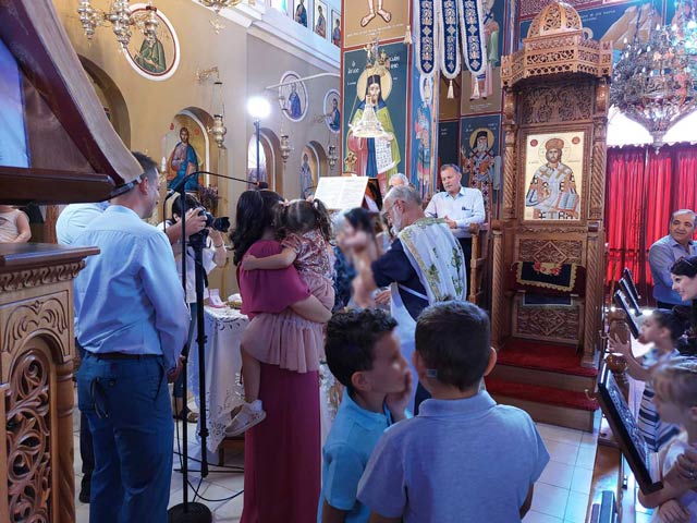 Tο μυστήριο τέλεσε ο Αρχιερατικός Επίσκοπος πάτερ Γεώργιος Παπαϊωάννου την Κυριακή 3 Οκτωβρίου στις 12 το πρωί στον Ιερό Ναό Αγίου Ιωάννη Τυρνάβου και ακολούθησε τραπέζι στο κέντρο δεξιώσεων Ανδρομέδα.