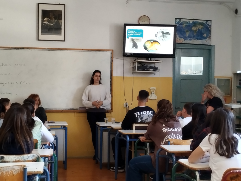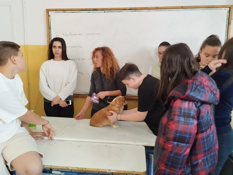 Πραγματοποιήθηκε ομιλία, ενημέρωση και πληροφόρηση της σχολικής κοινότητας με πρόσκληση ατόμων που ασχολούνται με τη φύλαξη άγριων ζώων ή/και ζώων συντροφιάς και εργαζόμενων ή εθελοντών φιλοζωικών σωματείων και οργανώσεων, όπως των κυριών Ξενοπούλου Άννας (ιδιοκτήτρια του καταφυγίου αδέσποτων ζώων,Άμος ),Στατήρη Άννας και Μεταξά Μαρίας, ενεργές εθελόντριες αδέσποτων ζώων του Δήμου Τυρνάβου και του καταφυγίου Άμος.